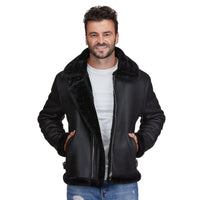 Introducing the Braveman Faux Shearling Bomber Jacket – a stylishly rugged outerwear piece that combines timeless design with modern comfort. Crafted with a sleek faux leather exterior, this jacket is built to shield you from chilly weather, while its plush, sherpa-fleece lining offers unmatched warmth and coziness.