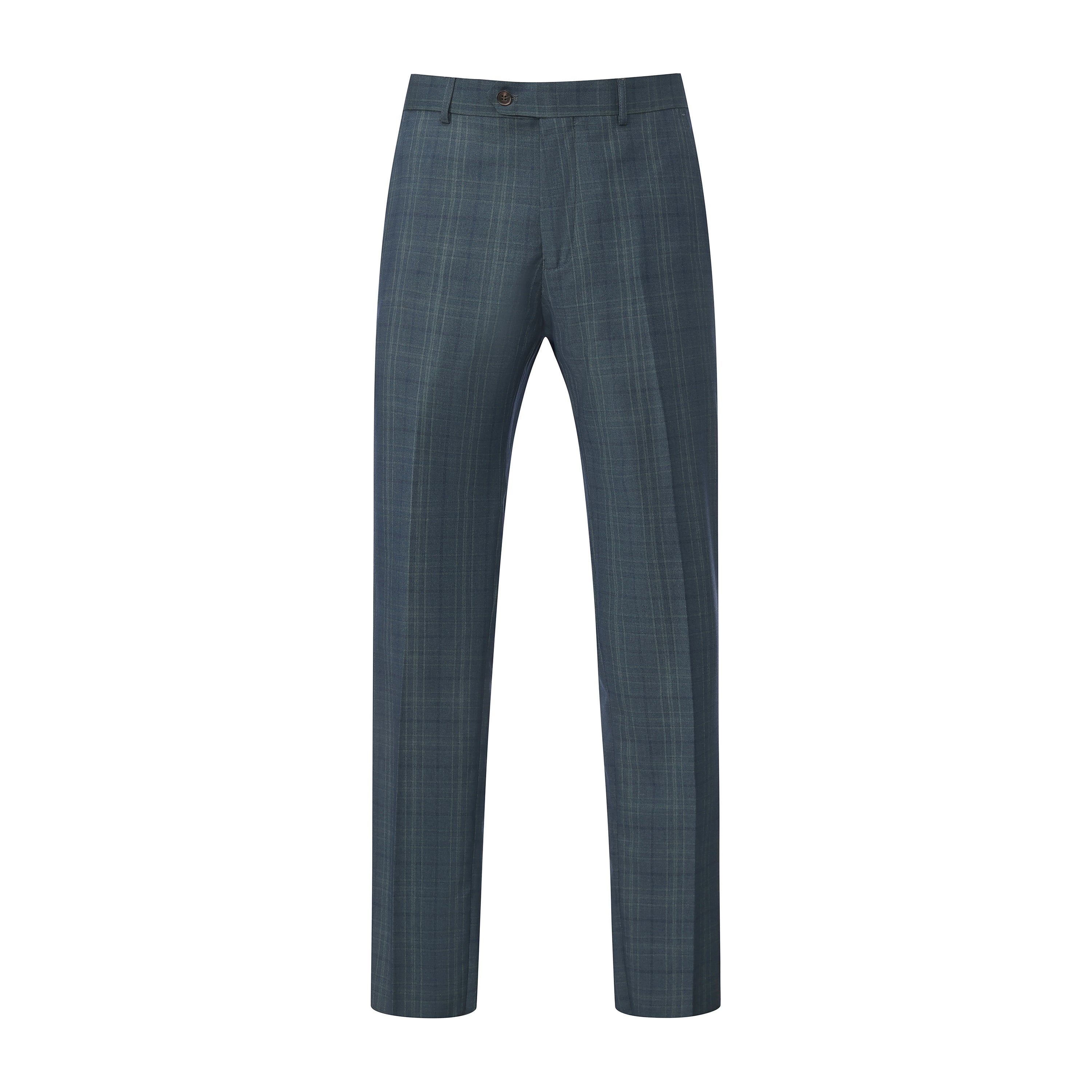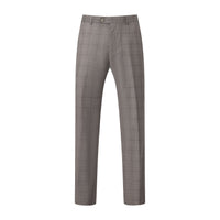 The classic plaid pattern adds depth and character, making it an elevated choice for weddings, business engagements, and formal occasions. The slim-fit jacket features a wide notch lapel, two-button closure, double side vents, and multiple interior and exterior pockets for both style and function. The coordinating flat-front trousers are delivered long and unhemmed, allowing for precise tailoring and a custom finish.