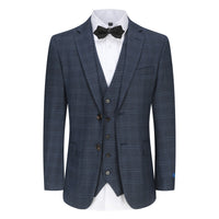 Slim Fit 3PC Tailored Blue Check Suit