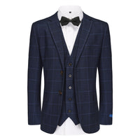 Gino Vitale 3-Piece Slim Fit Stretch Ink Blue Windowpane Plaid Suit