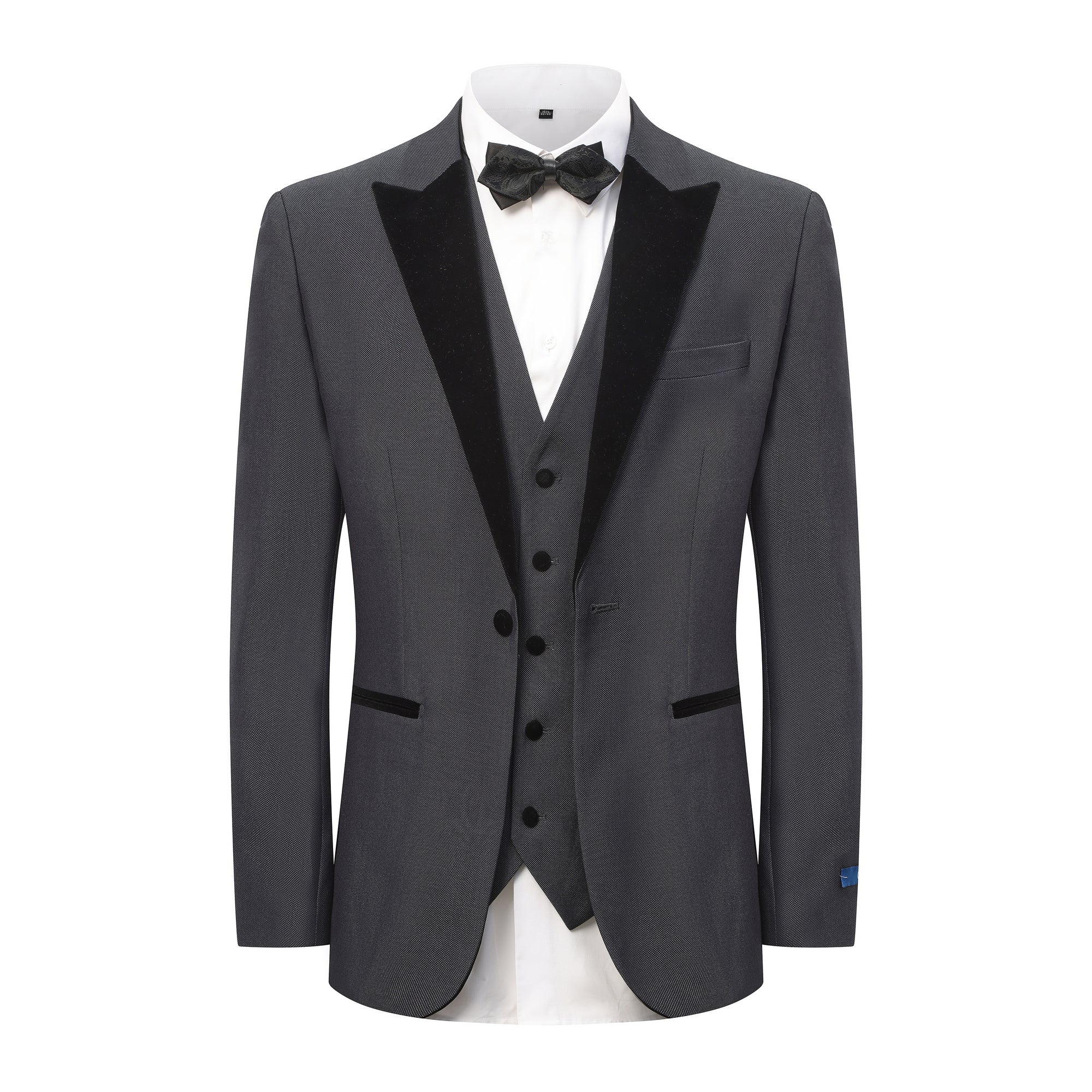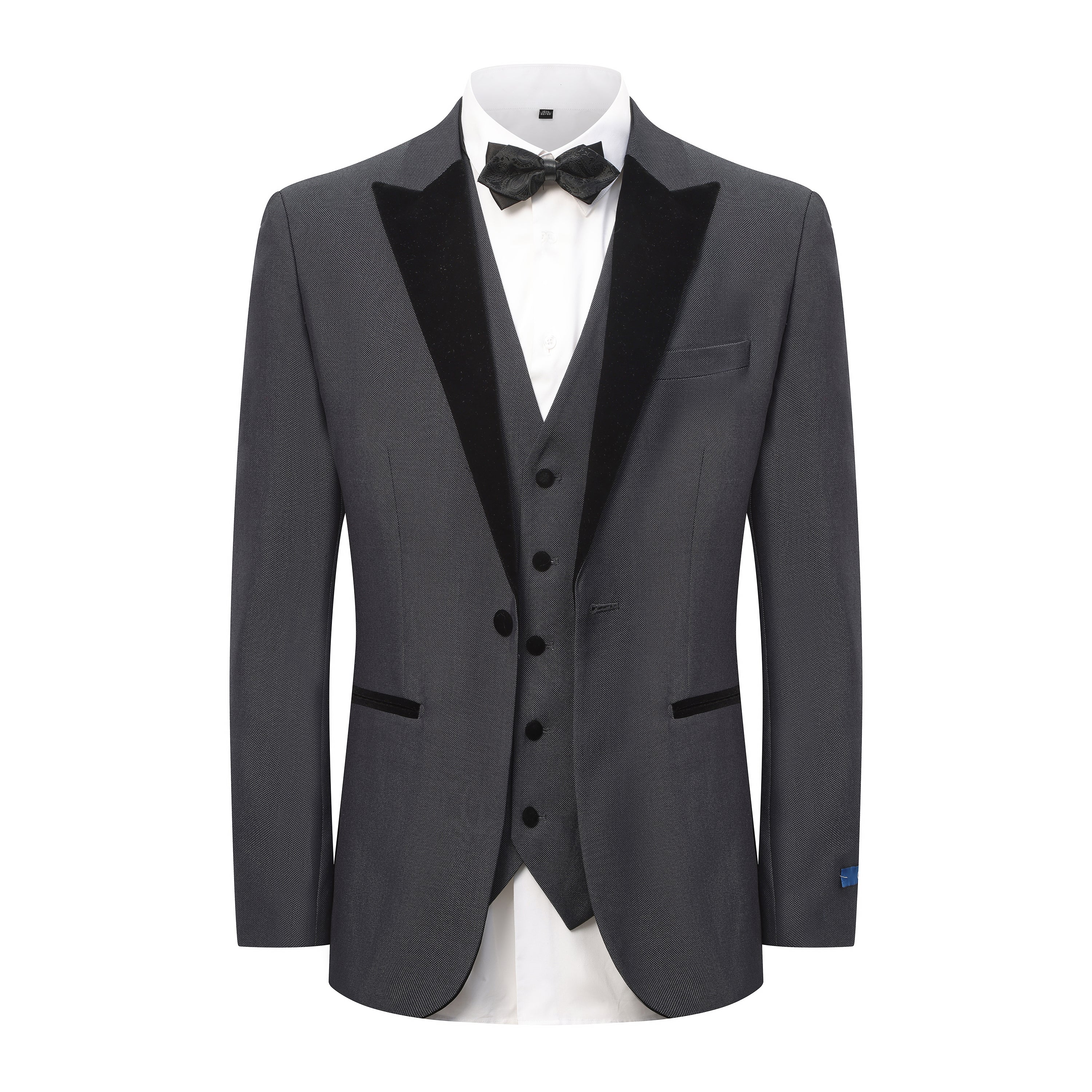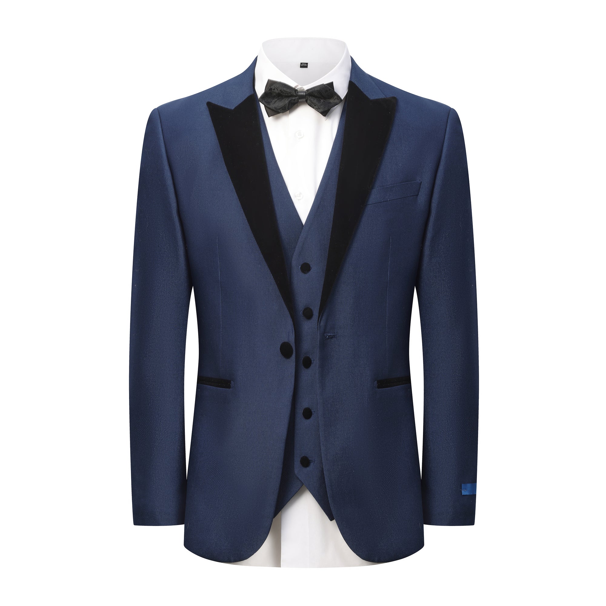 Men's 3-Piece Peak Lapel Satin Trim Tuxedo with Subtle Sheen
