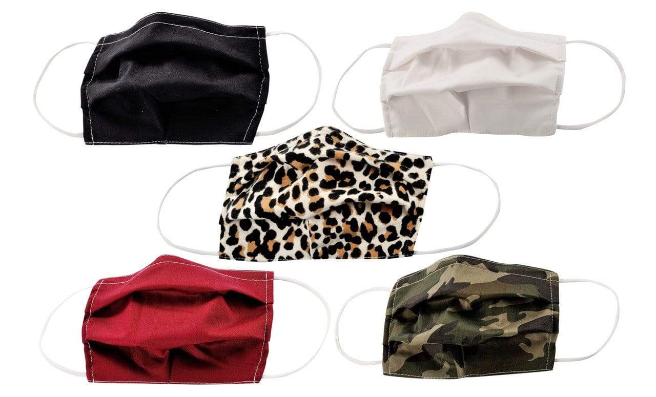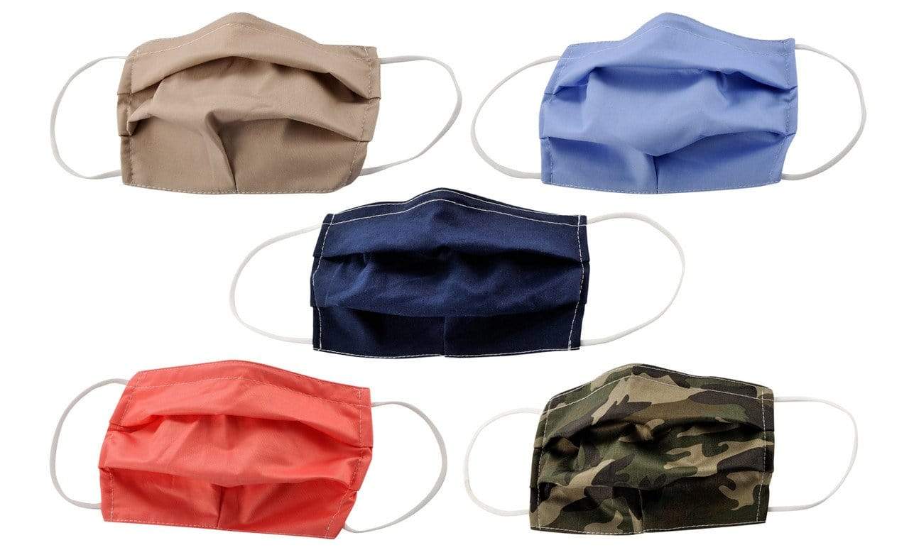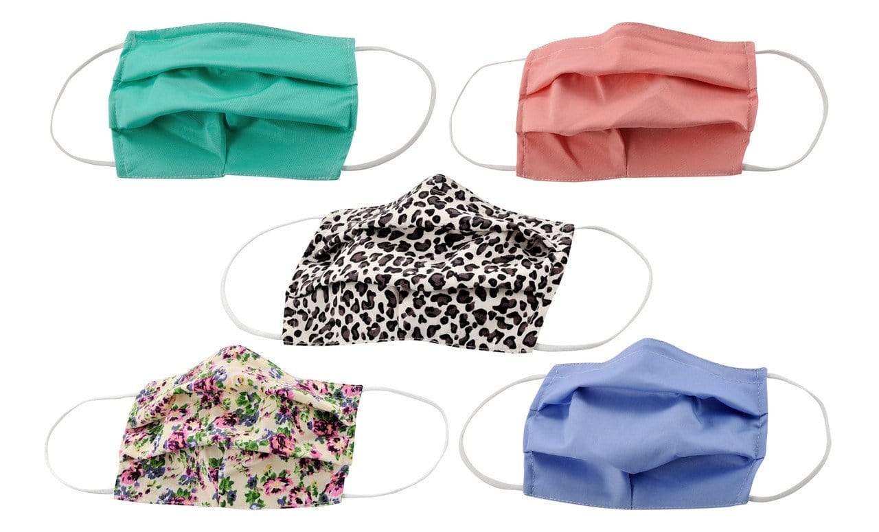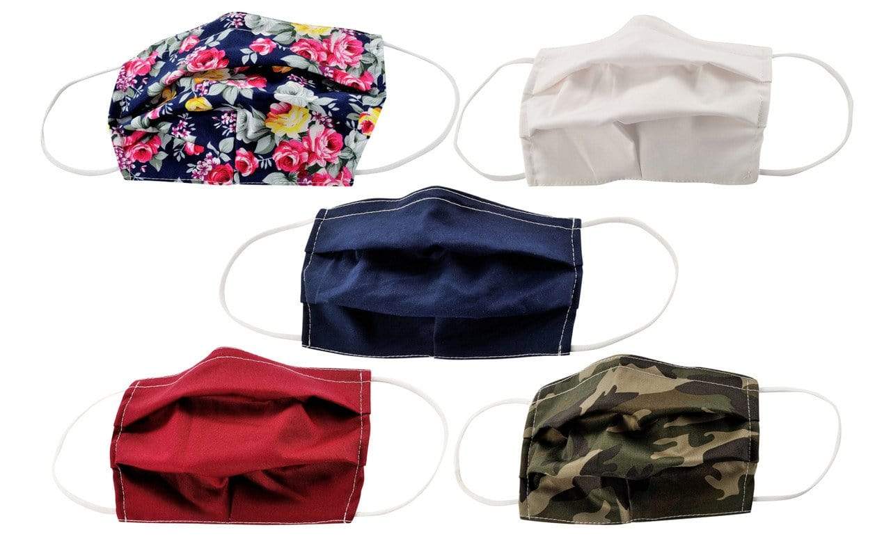 5-Pack Pleated Reusable Cotton Non-Medical Masks with Adjustable Nose Bridge