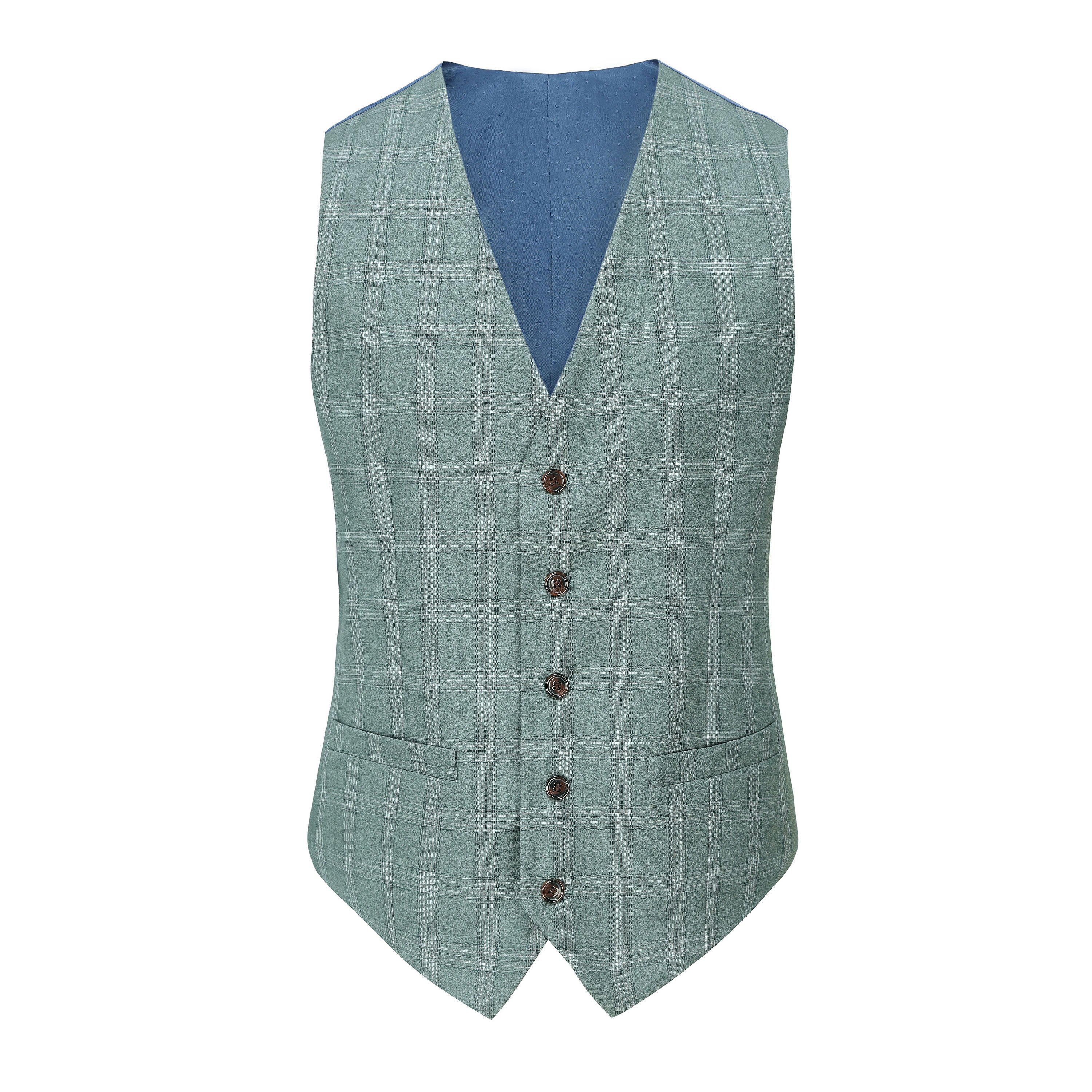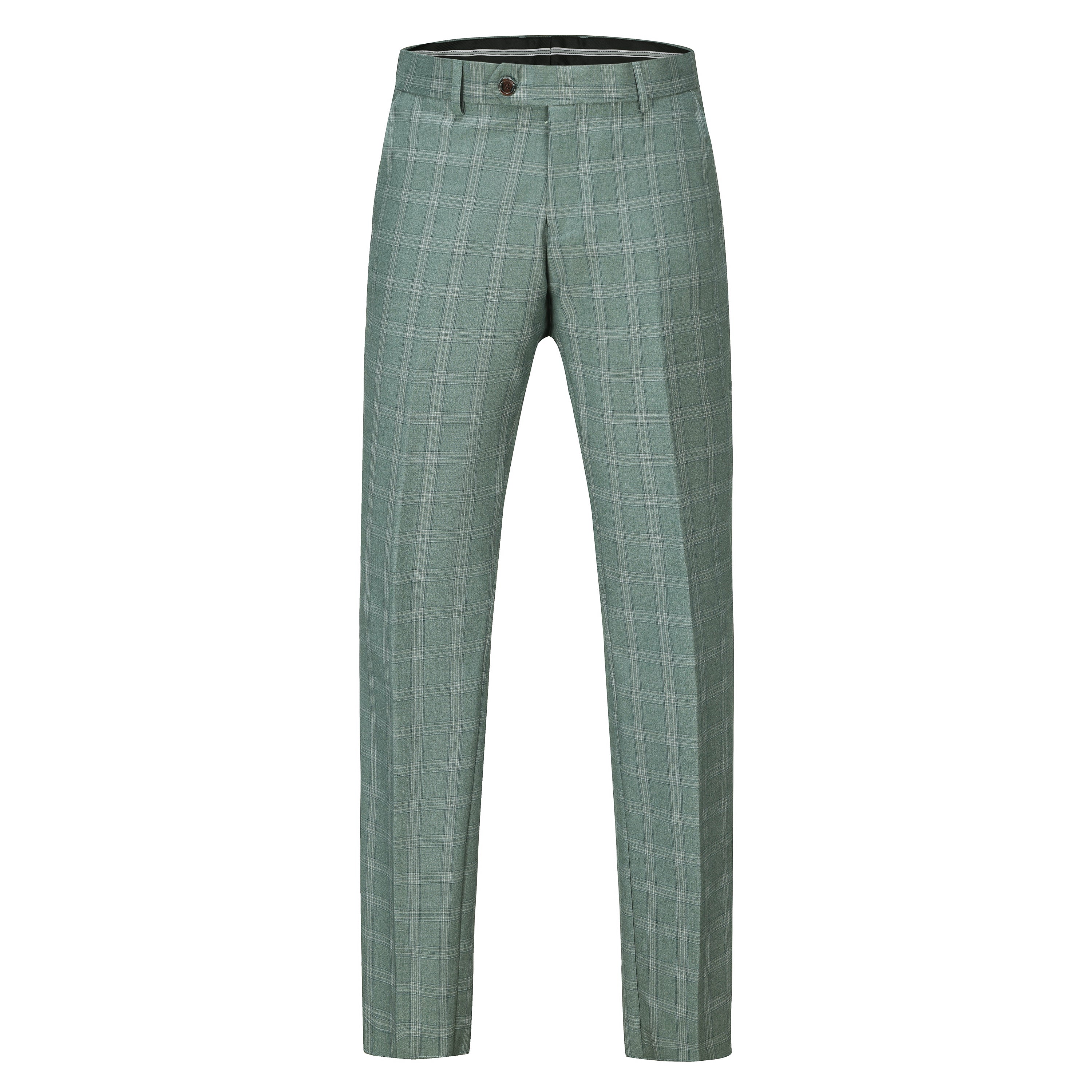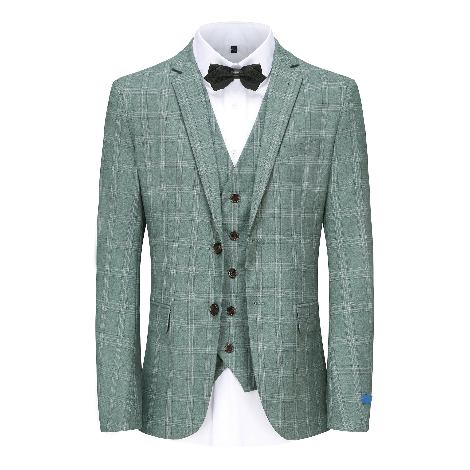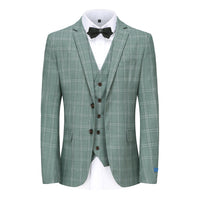 Introducing the Men's 3-Piece Slim Fit Green and White Plaid Suit. Inspired by European tailoring, it flatters with a two-button single-breasted jacket, elegant design, and flexible stretch fabric for ultimate comfort and style. Perfect for formal events and dynamic activities.