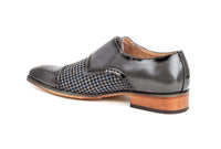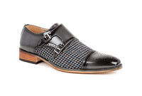 Gino Vitale Double Monk Strap Houndstooth Medallion Cap Toe Dress Shoes
