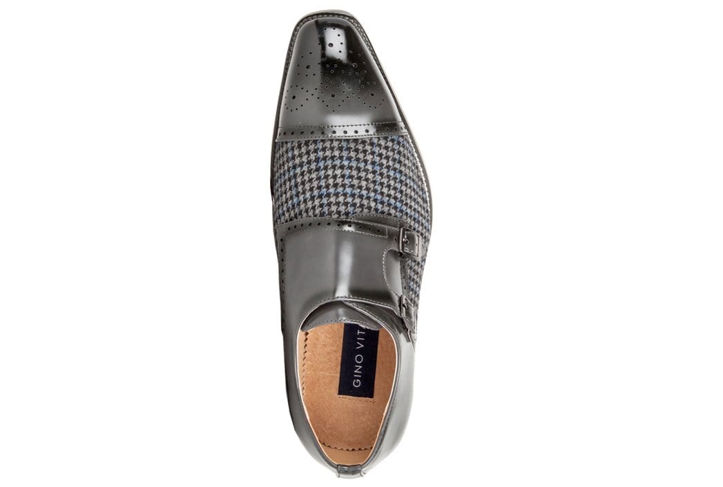 Gino Vitale Double Monk Strap Houndstooth Medallion Cap Toe Dress Shoes DAILYHAUTE