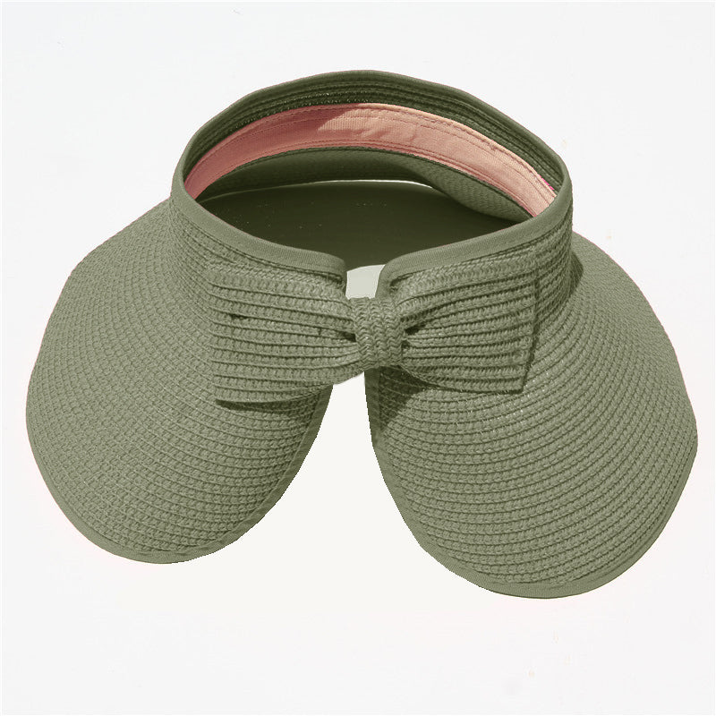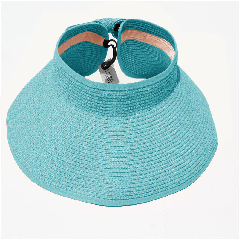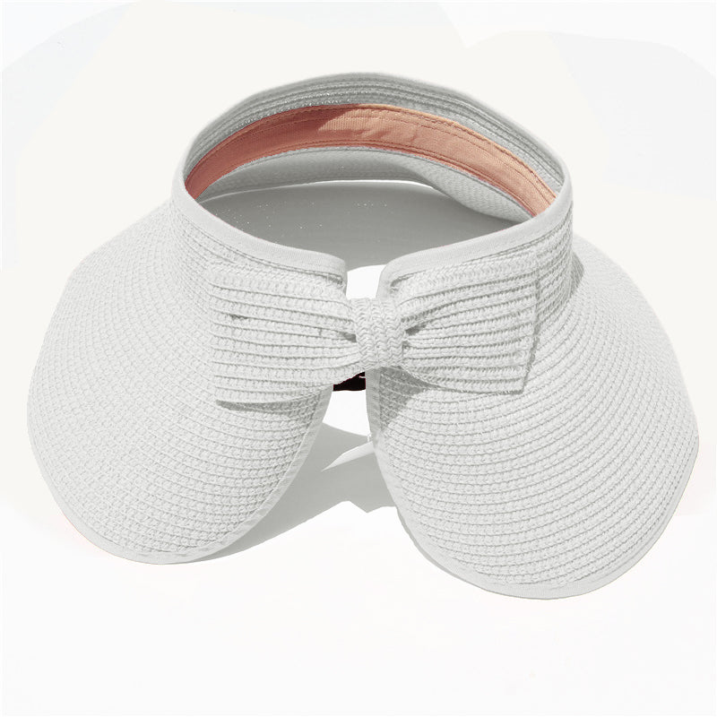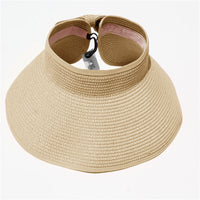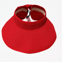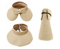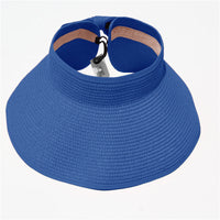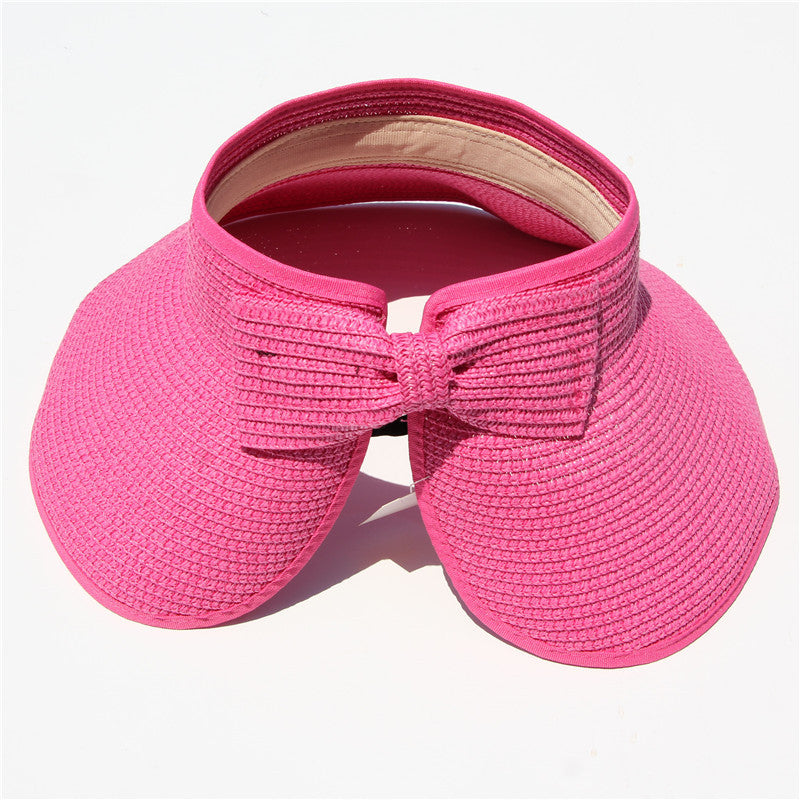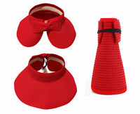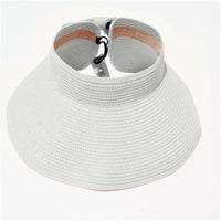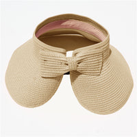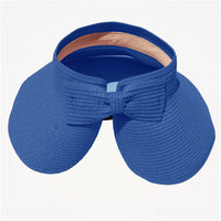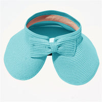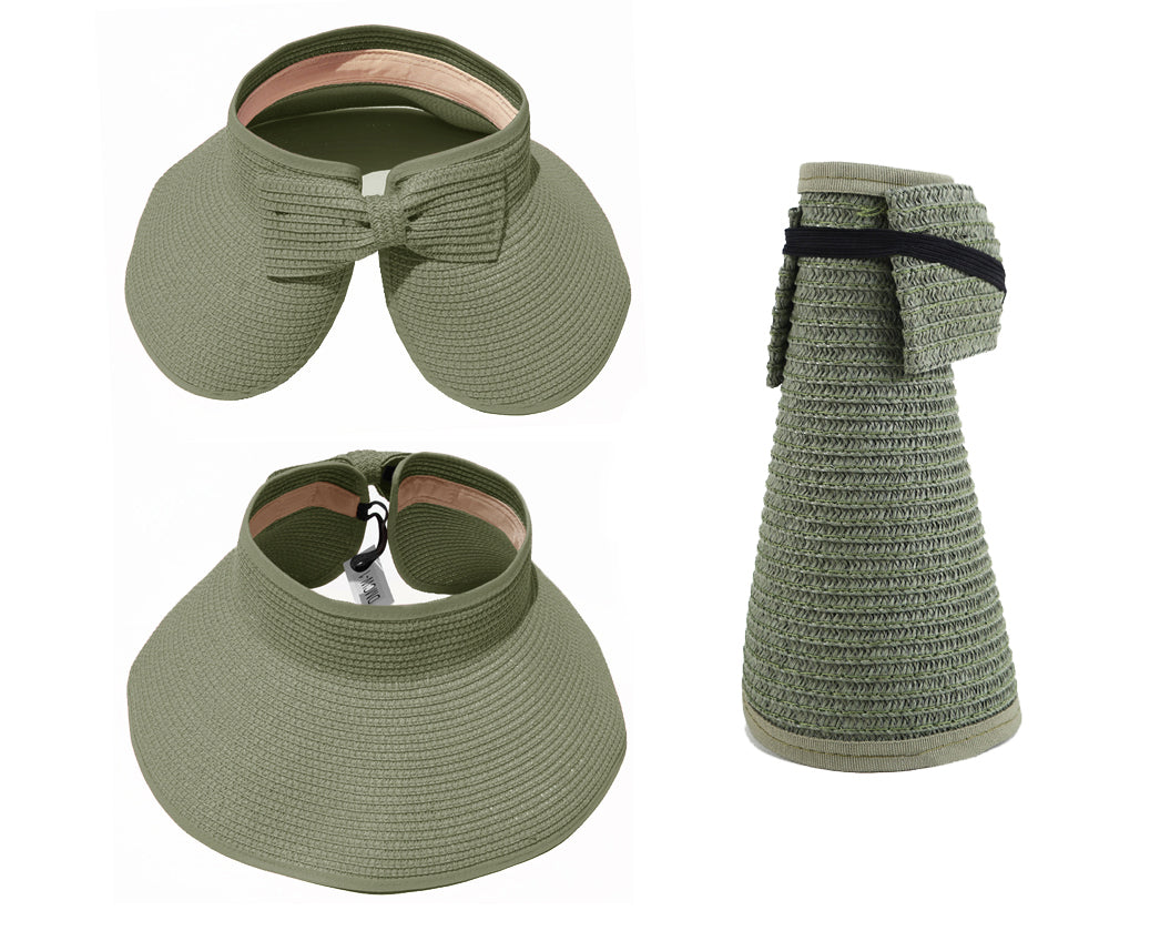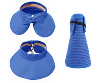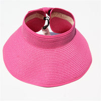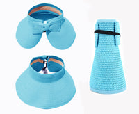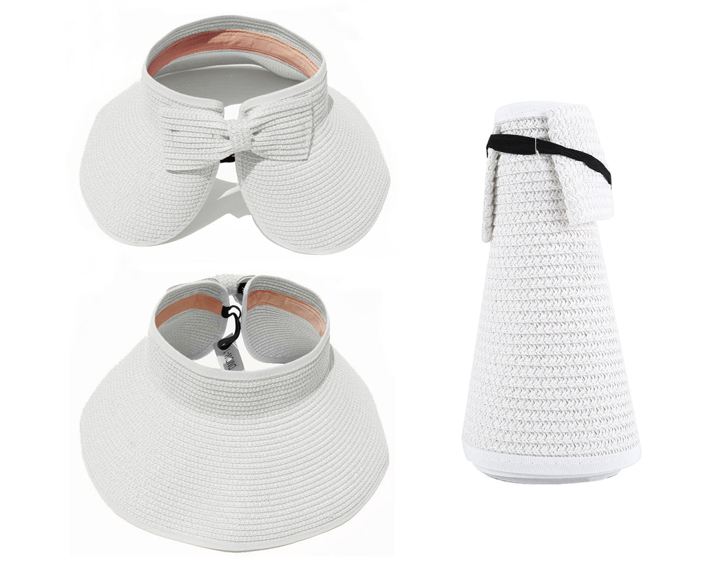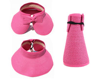 This convenient, packable roll up hat will keep your face protected from the sun during summer fun. This hat is easily adjustable with a velcro closure in the back and a cute bow detail. The opening at the top allows room for your hair in a ponytail or messy bun. The visor hat rolls compactly into a small packable shape, easy to throw in a purse, beach back, or suitcase.