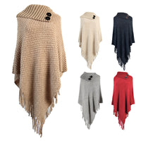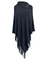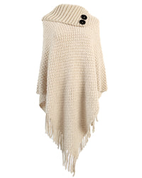 Haute Edition Women's Foldover Button Neck Sweater Knit Poncho. One size fits all (S-XL).