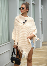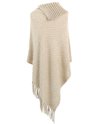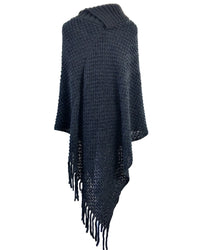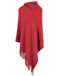Layer up in chilly weather with this fashionable drapey sweater knit poncho. Made of thick knit sweater material, this accessory adds a touch of elegance to any outfit. The asymmetrical hem is feminine and flattering. The knit sweater features a hint of stretch allowing you to easily pull it on and off.